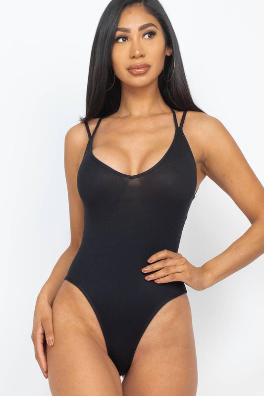 "Natalie" Black Crisscross Bodycon Bodysuit